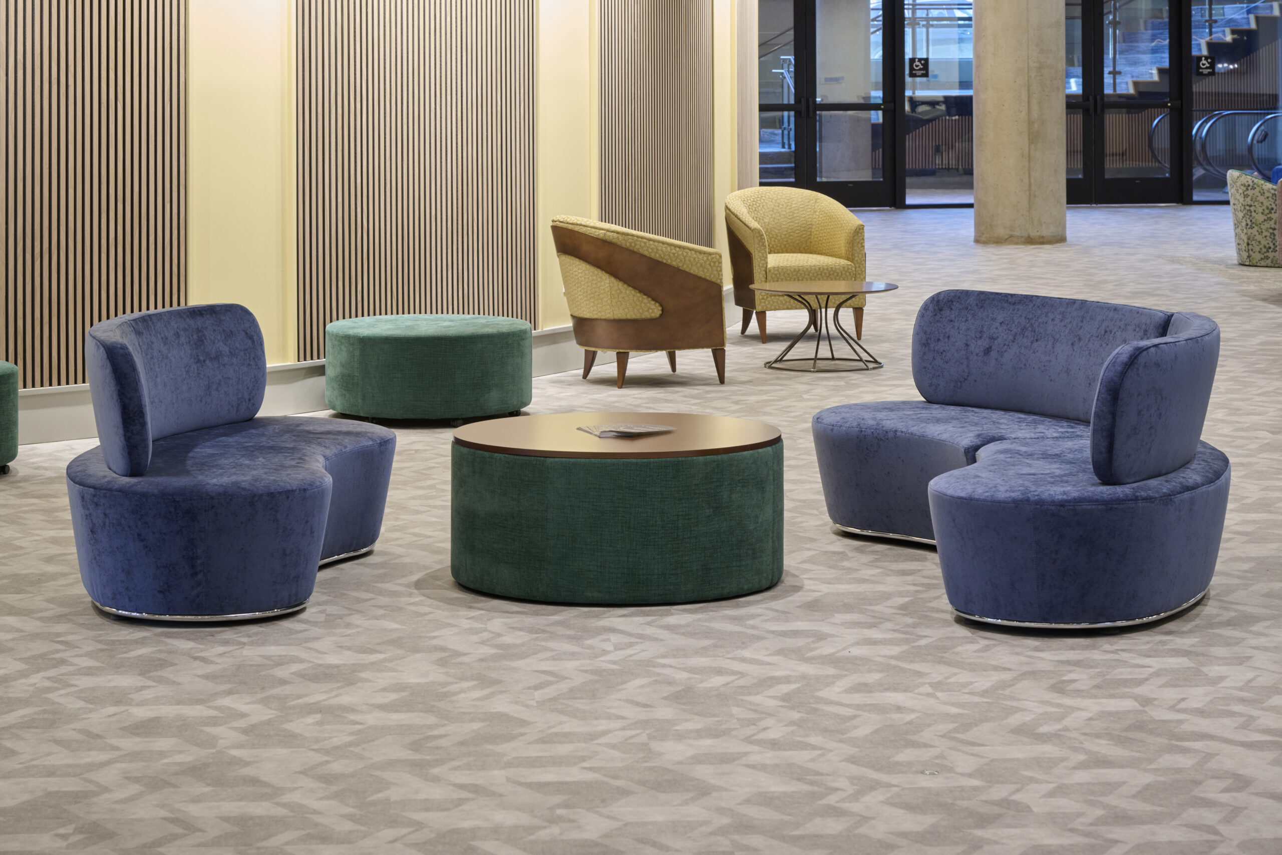• Tiered seating nook ideal for group meetings, presentations, or photography